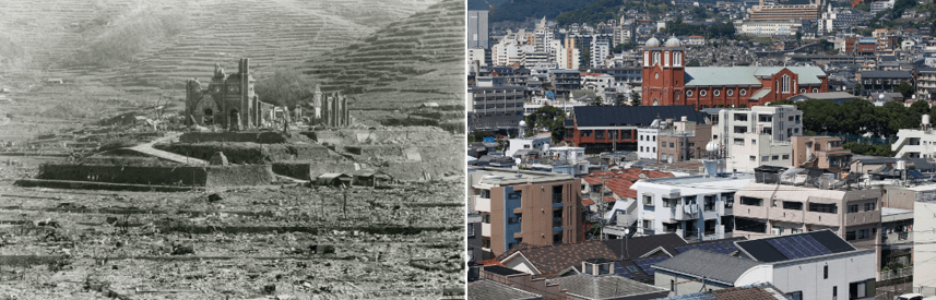 Image by WikiImages from Pixabay. Photo of Nagasaki after the bombing, from a 1946 US report.