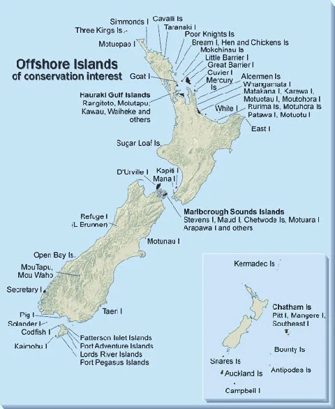 Located off the southern coast of the South Island is Stewart Island (Te Punga o Te Waka-a-Māui), which is the third largest island in the country. New Zealand consists of over 600 islands, including the Subantarctic Islands. Approximately 16 of these islands are inhabited. Therefore, it’s wrong to say that New Zealand has only one or two islands.